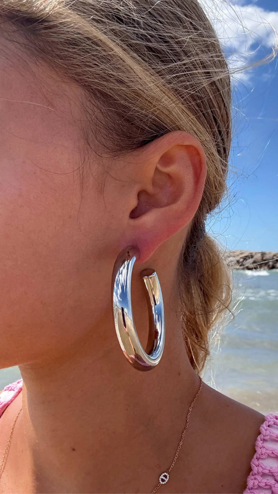 Créoles dorées presque fermées,eur surface polie capte subtilement la lumière.